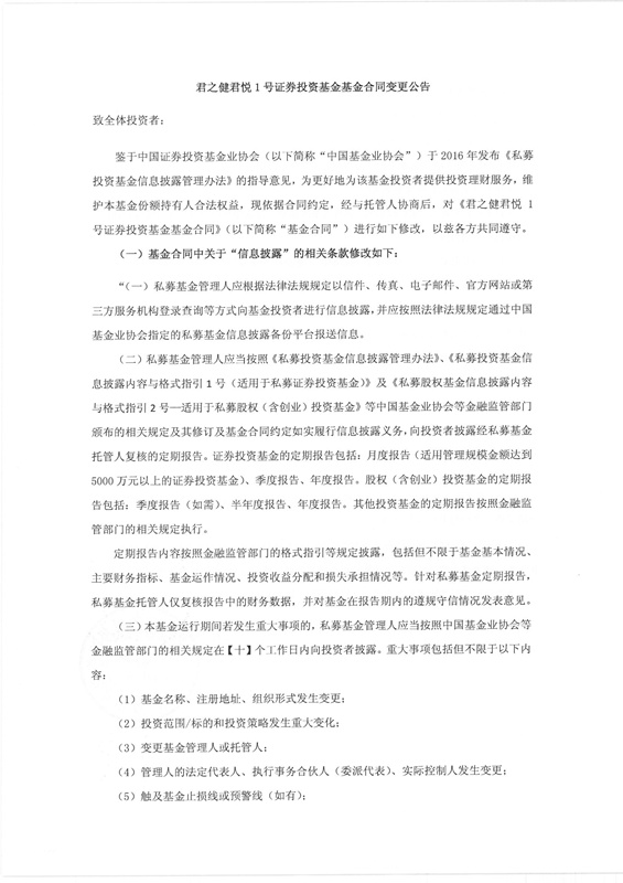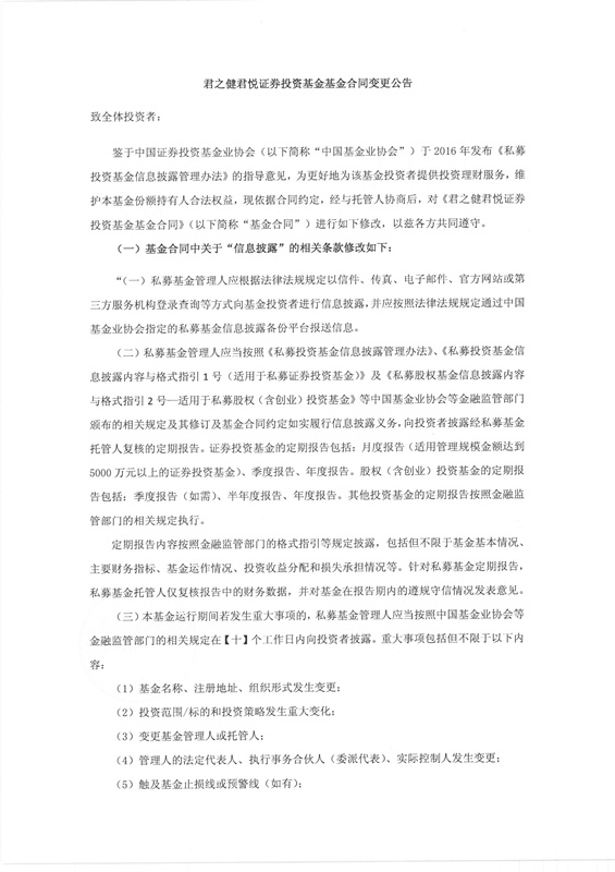君之健君悦系列证券投资基金基金合同变更公告