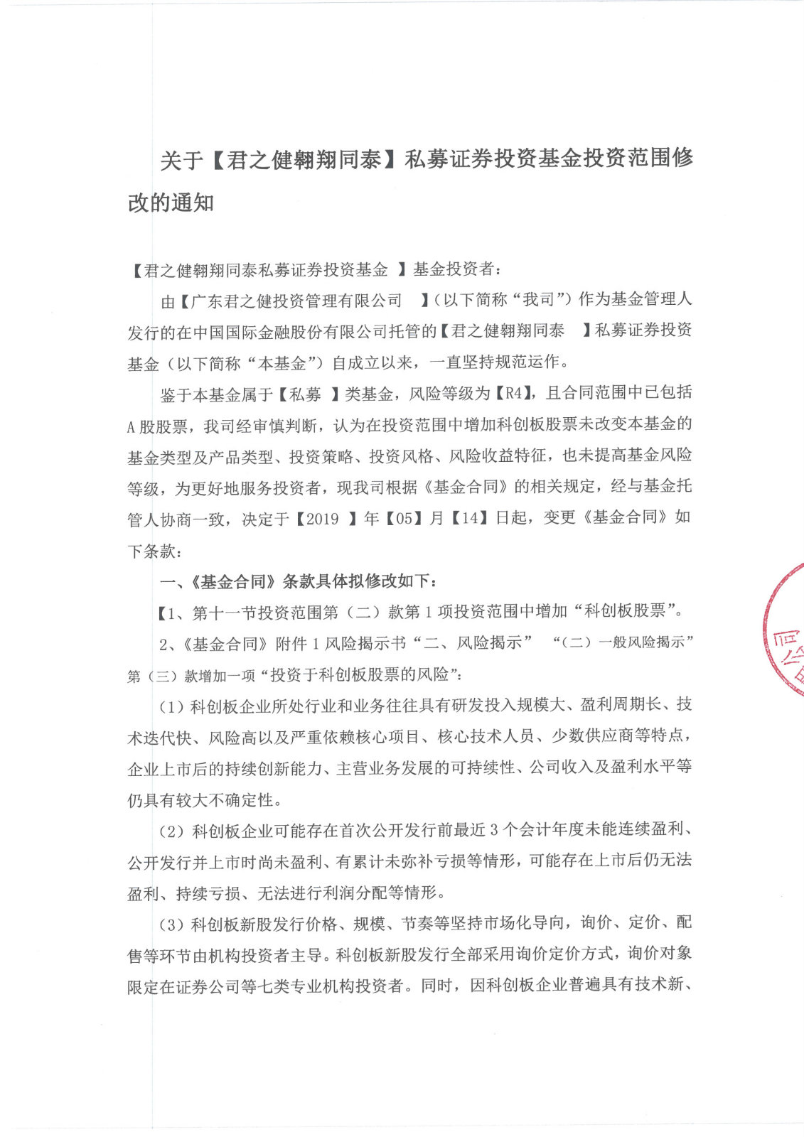 君之健翱翔同泰私募证券投资基金投资者告知书