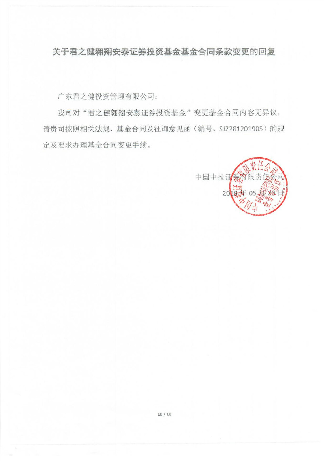 由【广东君之健投资管理有限公司 】(以下简称“我司”)作为基金管理人发行的【君之健翱翔安泰】证券投资基金(以下简称“本基金”)自成立以来,一直坚持规范运作。