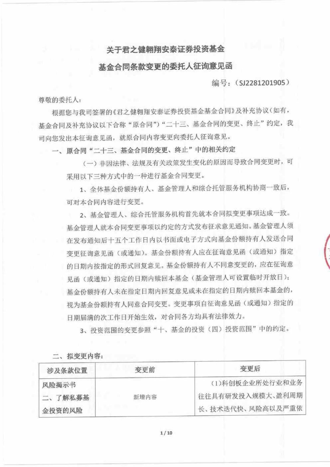 【君之健翱翔安泰证券投资基金 】基金投资者: