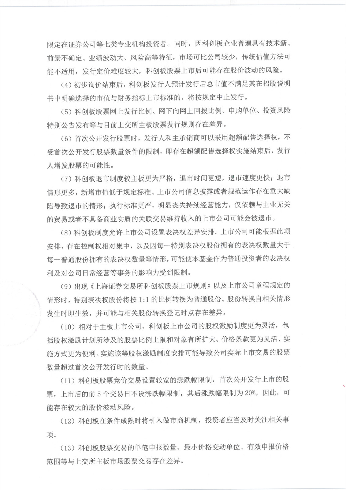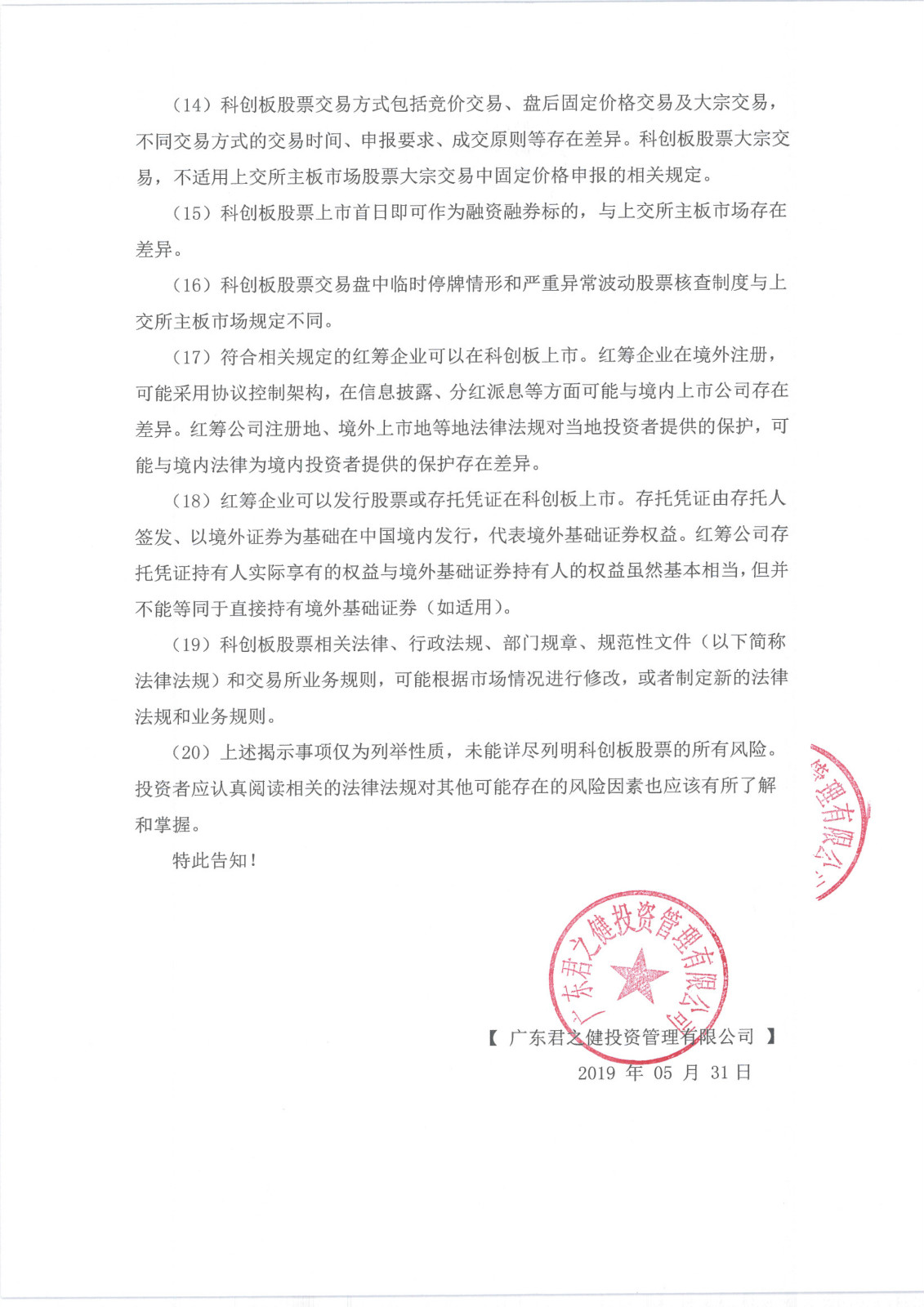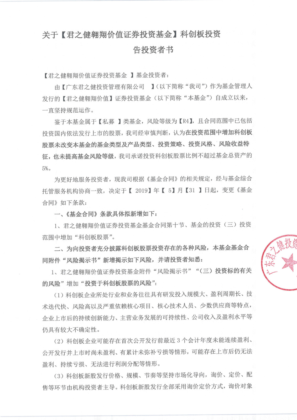 关于【君之健翱翔价值证券投资基金】科创板投资 告投资者书