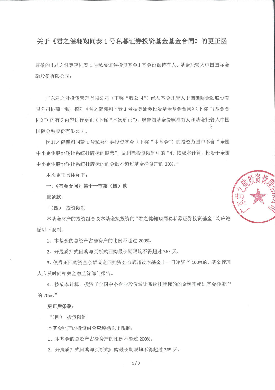 君之健翱翔同泰1号更正函