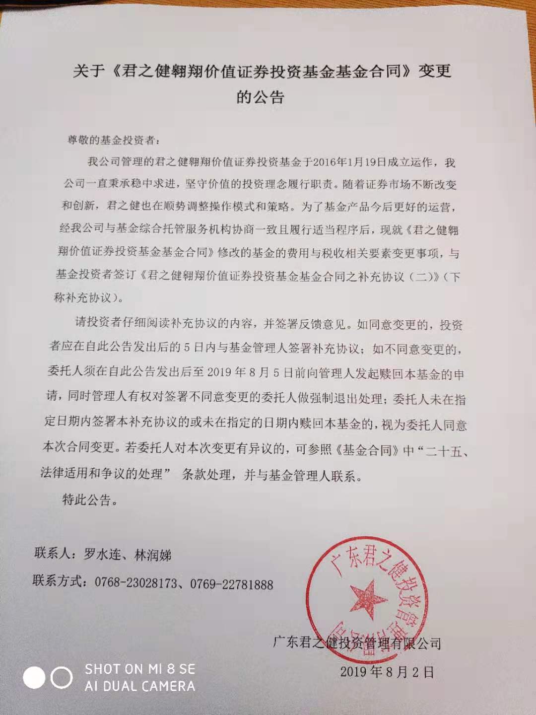 关于《君之健翱翔价值证券投资基金基金合同》变更的公告