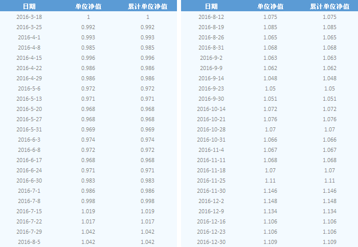| 日期 | 单位净值 | 累计单位净值 | 日期 | 单位净值 | 累计单位净值 |