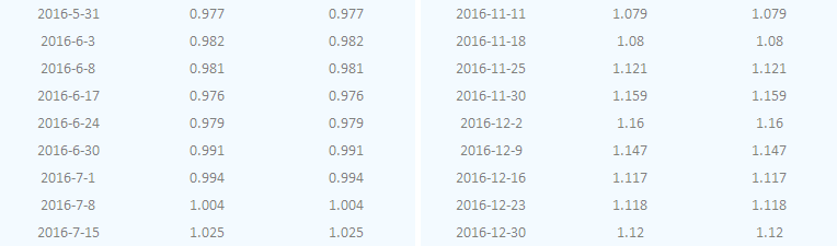 | 日期 | 单位净值 | 累计单位净值 | 日期 | 单位净值 | 累计单位净值 |