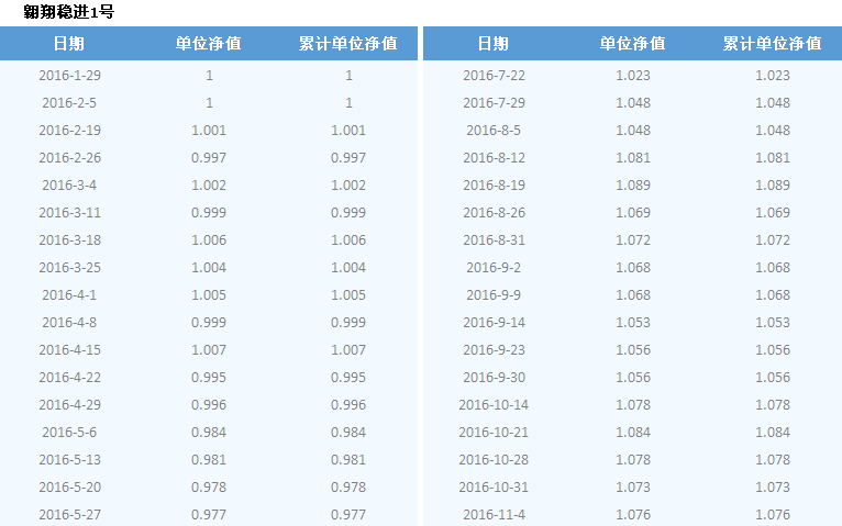 2016年君之健翱翔稳进1号证券投资基金产品净值周报